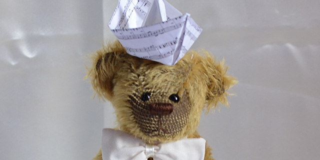 Petit ours faisant partie des musiciens «Amadéours Philharmonic Orchestra».